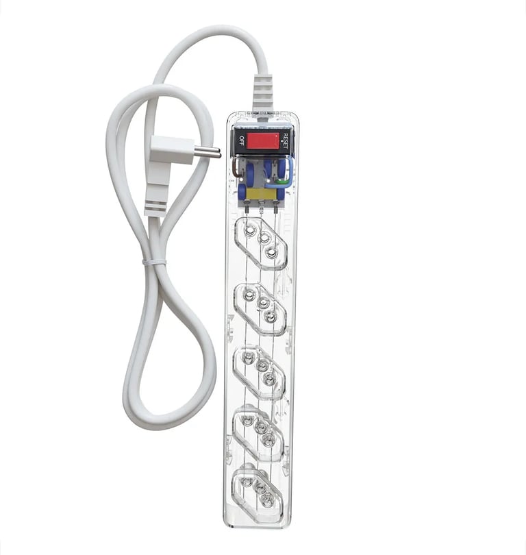 Filtro de Linha (Genérico): São essencialmente extensões com fusível e, na melhor das hipóteses, um pequeno capacitor. Protegem contra sobrecarga (excesso de aparelhos ligados), mas são ineficazes contra surtos de alta voltagem causados por raios.