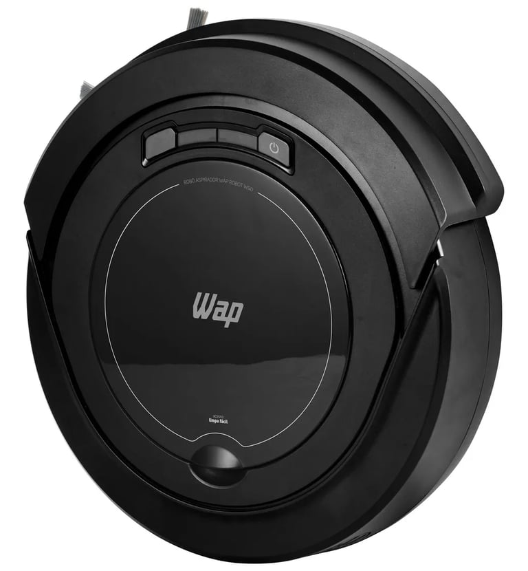 Diferente de modelos genéricos, o WAP W90 é construído em polímero de alta resistência (ABS) com acabamento fosco, o que evita riscos visíveis em colisões inevitáveis. Seu chassi possui apenas 8cm de altura, uma engenharia pensada para transitar sob sofás e camas box sem prender.